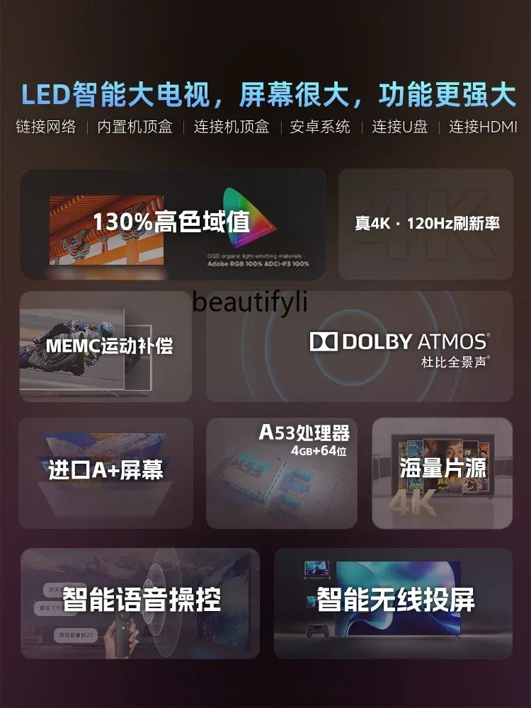 Frameless TV 100 inch intelligent network 85WIFI75 high definition 4k65 LCD full large screen